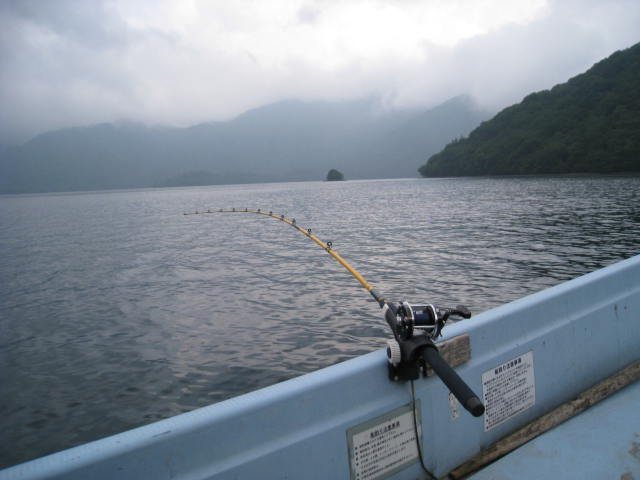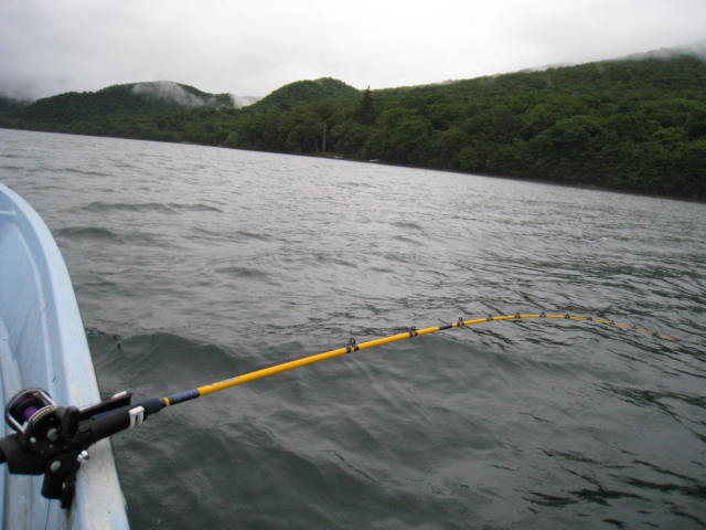 右手の竿は100ヤード出していて浅いところに船が入っちゃうとやばいので、