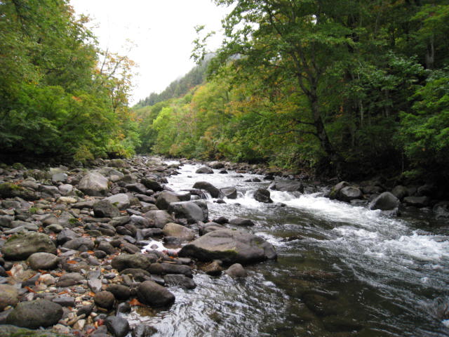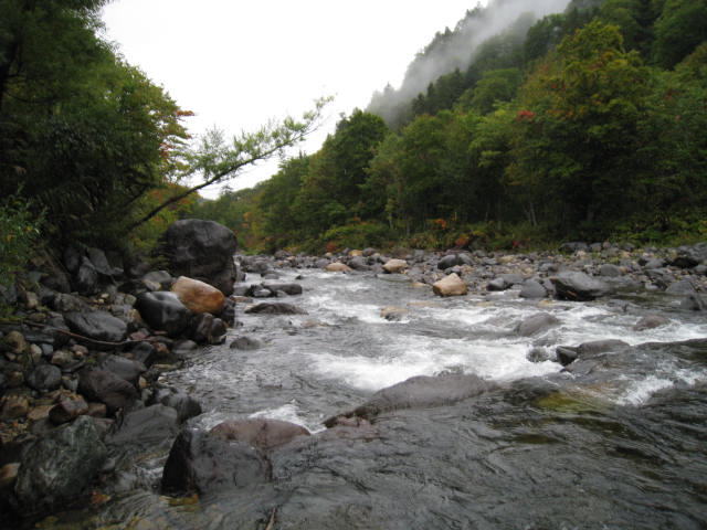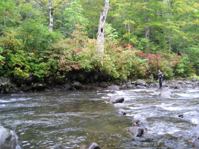 午後は大白沢の合流点付近で竿を振るものの小さい魚のチェイスが