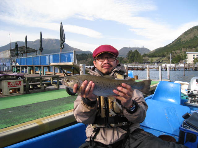ボート屋に戻ったら、なんと59cmのブラウンをミノーで釣ってきた方が