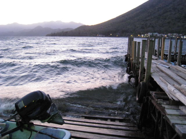 半月の桟橋で積荷を全部降ろし、なんとか迎えの車で生還しました